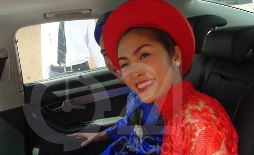 | Tăng Thanh Hà tươi cười trước khi xe chuyển bánh về nhà chồng |