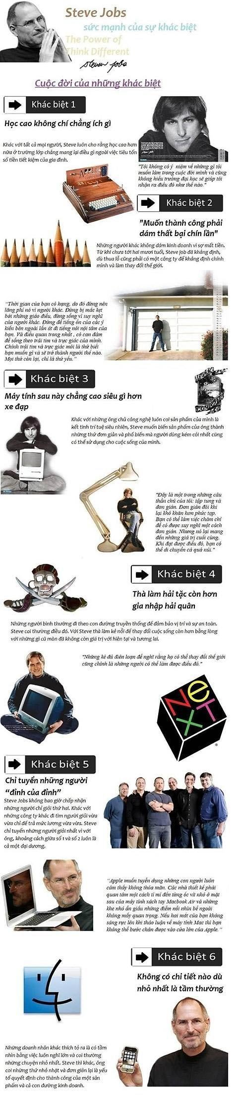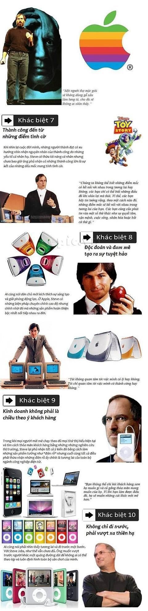 Sức mạnh sáng tạo phi thường của "thầy phù thủy" Steve Jobs để biến Apple trở thành hãng công nghệ hàng đầu thế giới xuất phát từ những sự khác biệt. Hãy cùng điểm lại những sự khác biệt nào đã tạo nên thành công của Jobs và hãng "Quả táo".