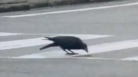 Con quạ biết "nhờ" ô tô bóc vỏ hạt