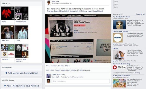 Facebook lại tiếp tục thay đổi giao diện Timeline của mình, giao diện này đang được triển khai thử nghiệm tại New Zealand.
