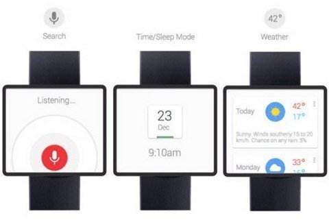 | Mẫu ý tưởng thiết kế đồng hồ thông minh của Google với khả năng nhận diện giọng nói, hiển thị thông tin thời tiết... - Ảnh: TechHive |