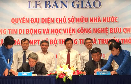 Sáng nay (10/7), Bộ TT&TT và Tập đoàn Bưu chính Viễn thông VNPT đã chính thức ký kết Biên bản chuyển giao quyền đại diện chủ sở hữu nhà nước tại VMS-MobiFone và Học viện Công nghệ BCVT từ VNPT về Bộ.