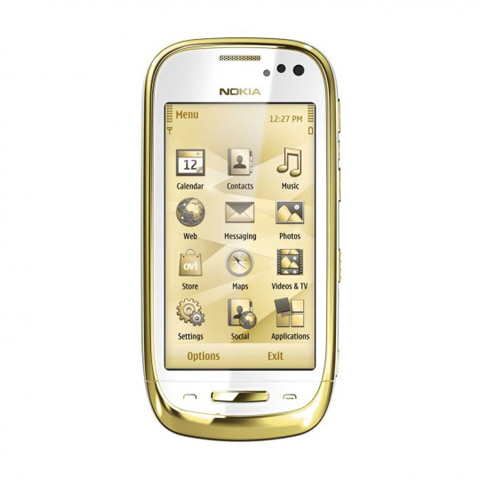 Nokia vừa tung ra thị trường chiếc Oro, phiên bản C7 với bộ khung được mạ 18 carat vàng, kết hợp với đá sapphire và da cao cấp.