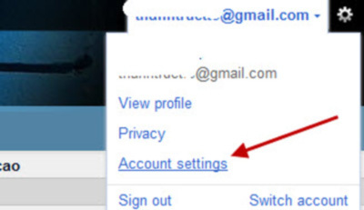 | Click vào mũi tên ở góc phải hộp thư để chọn Account settings. |