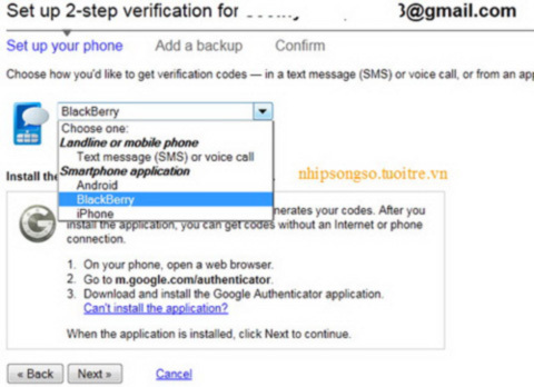Ứng dụng cho smartphone: Ngoài việc đăng ký bằng số ĐTDĐ để nhận mã chứng thực, bạn có thể cài đặt một ứng dụng cho smartphone Apple iPhone, BlackBerry hoặc các dòng smartphone đang sử dụng hệ điều hành Android.