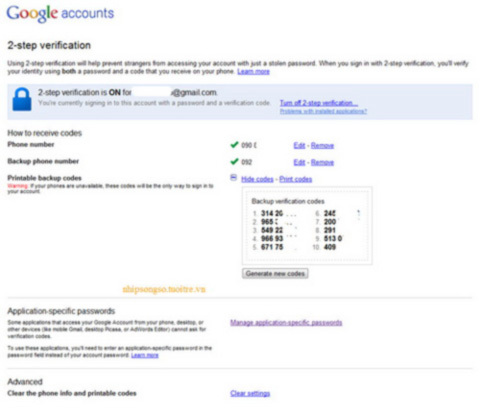 Hiểu đơn giản, mật khẩu của tài khoản Gmail là lớp bảo vệ thứ nhất và một mã số (code) ngẫu nhiên cho mỗi lần đăng nhập là lớp thứ hai. Khi đăng nhập vào Gmail, bạn cần cung cấp lần lượt mật khẩu và mã số mới có thể vào được hộp thư.
