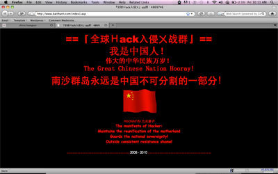 Trước đó, ngày 8/6, trang web của Trung tâm biên phiên dịch quốc gia thuộc Bộ Ngoại giao VN tại địa chỉ ntc.mofa.gov.vn cũng đã bị tin tặc xâm nhập và treo cờ Trung Quốc, đồng thời thay đổi nội dung các đường link bên trái website.