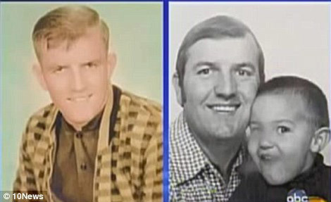| Một bức ảnh người cha của ông Charles chụp năm 1965 (bên trái) rất khớp với mức ảnh chụp ông Charles cùng cha vào năm 1972 (phải). |