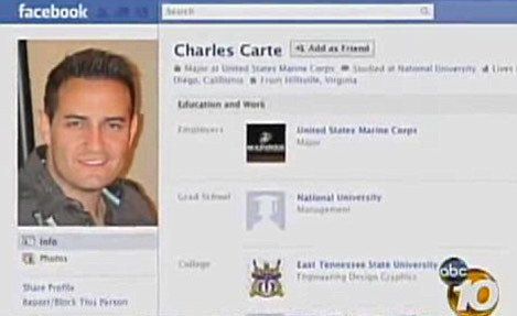| Trang Facebook của Thiếu tá thủy quân lục chiến Charles Carte. |