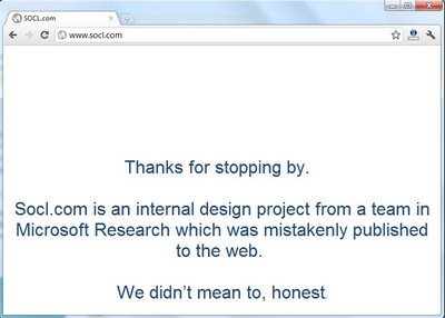Dường như nhận ra “bí mật” của mình đã bị khám phá, lập tức Microsoft đã đóng cửa trang web trên và thay vào đó bằng một thông điệp khác: “Cám ơn vì đã dừng chân. Socl.com là một dự án thiết kế nội bộ của nhóm nghiên cứu của Microsoft đã vô tình được đưa lên trang web. Chúng tôi không cố ý làm điều này”.