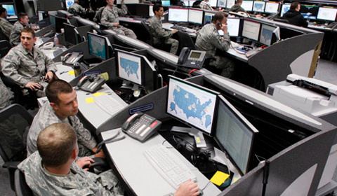 | Bên trong Trung tâm An ninh và điều hành mạng lưới chỉ huy không lực không gian Mỹ tại Colorado Springs, bang Colorado (Mỹ) - Ảnh: Reuters |