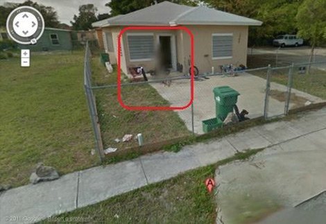 Hình ảnh người phụ nữ này được chụp lại bên ngoài căn nhà của cô tại thành phố Miami (bang Florida), trong trạng thái hoàn toàn khỏa thân, trên tay cầm 1 bình nước. Sau khi phát hiện ra sự xuất hiện của chiếc xe chụp ảnh lưu động Google Street View, có vẻ như cô đã rất bất ngờ và sốc, những hình ảnh được chụp lại tiếp theo đó cho thấy người phụ nữ này đưa tay lên bịt miệng đã nói lên điều này.