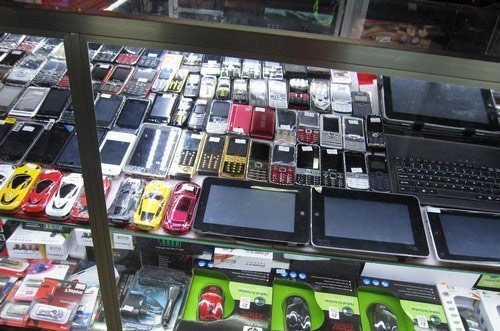 Ghé vào một ki-ốt đông khách ra vào, điều đập vào mắt chúng tôi là hàng loạt model điện thoại "có tên tuổi" với giá…rẻ như cho. Nokia E71 giá 850.000 đồng, Nokia C3 dán mác 1.250.000 đồng, điện thoại siêu xe BMW có thể về tay ngay với 1.400.000 đồng. Thậm chí, ở một gian hàng gần đó, chúng tôi còn khá bất ngờ khi tìm thấy "siêu phẩm" iPhone 4GS chưa từng xuất hiện trên thị trường với giá 2.500.000 đồng.