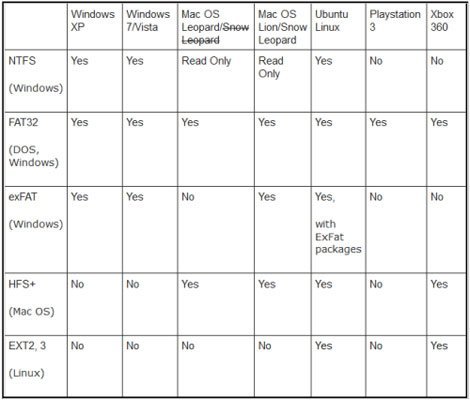 Tuy nhiên, hiện nay exFAT chưa có nhiều thiết bị và hệ điều hành hỗ trợ. Còn NTFS thì chỉ hoạt động trên Windows, Linux, Snow Leopard.