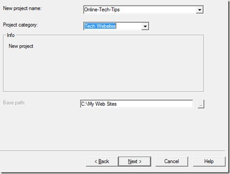 Màn hình sau cho phép bạn đặt tên dự án trong ô New project name, chọn thể loại cho dự án trong ô Project category và đường dẫn chính trong ô Base path. Nhấn Next để tiếp tục: