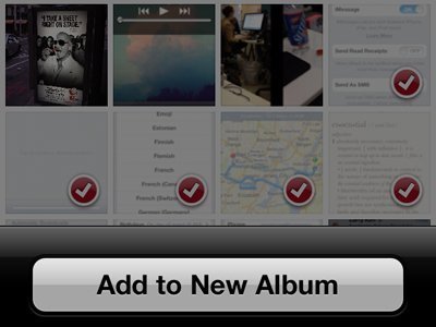 iOS 5 cho phép bạn tạo album ảnh để dễ quản lý hình ảnh hơn. Tại ứng dụng Photos, bạn bấm biểu tượng Action rồi chọn các ảnh cần đưa vào album, chọn Add To. Bạn bấm Add to New Album để tạo album mới và đưa ảnh vào album này.