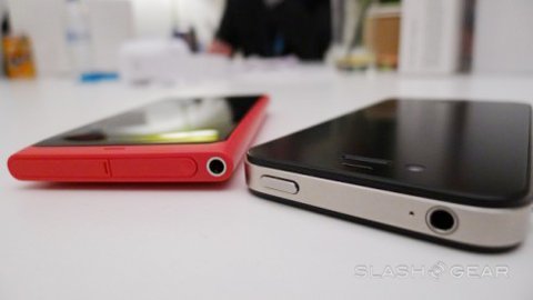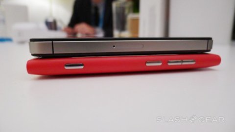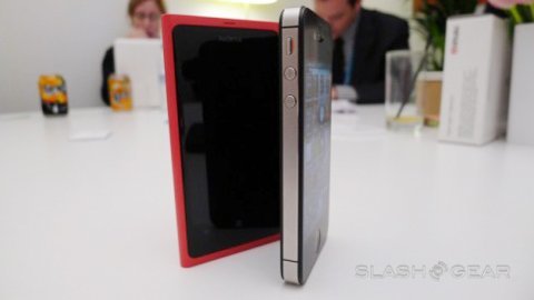 | iPhone 4S (9,3mm) mỏng hơn so với Lumia 800 (12,1mm). |