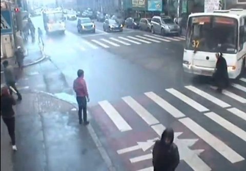 Xe buýt đâm liên tiếp hai người đi bộ trên đường