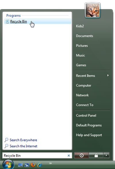 Theo mặc định Recycle Bin không được tích hợp trong menu Start của các bản Windows. Trong Windows 7, bạn có gõ “Recycle Bin” trong hộp search cũng không tìm thấy thùng rác này. Để có thể truy cập Recycle Bin ngay tại menu Start, bạn làm theo hướng dẫn sau:
