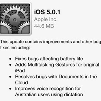 Bản iOS 5.0.1 ngoài việc cập nhật cho iPhone 4S thì Apple cũng khuyến cáo người dùng nên cập nhật cho cả iPad 1 thì sẽ sử dụng được tính năng multitouch gesture, duyệt các ứng dụng, mở thanh liệt kê ứng dụng đang chạy hoặc quay trở về màn hình chính mà không cần nhấn nút Home. Tính năng này trước vốn chỉ có trên iPad 2.