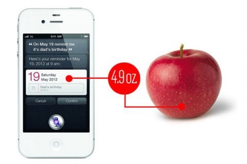 Điện thoại mới nhất của Apple nặng hơn ít gram so với iPhone 4 và có cân nặng ngang với trái táo có kích cỡ bình thường: 138,9 gram.