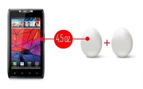 Nhẹ nhất trong danh sách 12 đồ gadget trong bài viết, Droid Razr nặng 127,5 gram, ngang với 2 quả trứng cỡ lớn. Còn chất lượng của Droid Razr? Bạn có thể tìm hiểu qua bài đánh giá chi tiết.