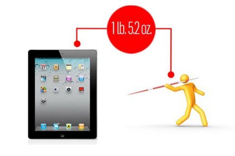 Với 601 gram, máy tính bảng của Apple nặng ngang với một cái lao dành cho phụ nữ trong môn ném lao.