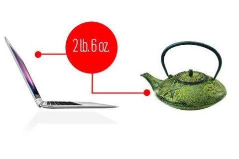 Macbook Air phiên bản 11 inch là một trong những laptop nhẹ nhất trên thị trường và nếu bạn muốn 1 đồ vật nặng ngang nó trong 1 hình dạng bé hơn thì đó chính là 1 chiếc ấm trà: 1,07 kg
