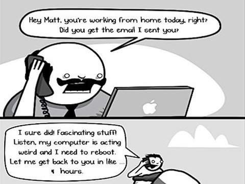 Ảnh minh họa: Giám đốc một doanh nghiệp sử dụng MacBook và gọi điện hỏi nhân viên: "Cậu có đang làm việc tại nhà không đấy? có nhận được mail tôi gửi không?" Nhân viên trả lời: "Tôi vẫn đang làm việc mà, nhưng mà máy tính (chạy Windows) gặp rắc rối và tôi đang phải khởi động lại. Tôi sẽ gọi lại cho sếp sau...1 tiếng nữa".