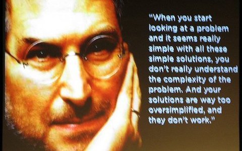 Jobs quan tâm đến sự đơn giản bắt nguồn từ tâm lý muốn chinh phục, chứ không phải bỏ qua, sự phức tạp. Khi đã đạt đến mức độ đơn giản như ông mong muốn, sản phẩm tạo ra sẽ vô cùng thân thiện với người dùng chứ không phải đánh đố họ. Ông nói: “Mọi chuyện thực ra hoàn toàn không dễ dàng. Để sản xuất được một cái gì đơn giản, cần phải hiểu được thách thức và tìm ra giải pháp.”