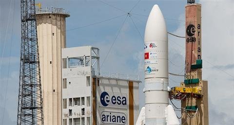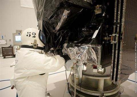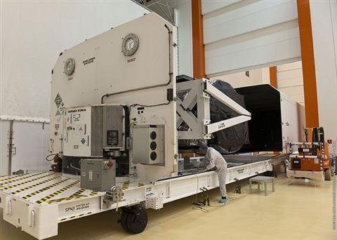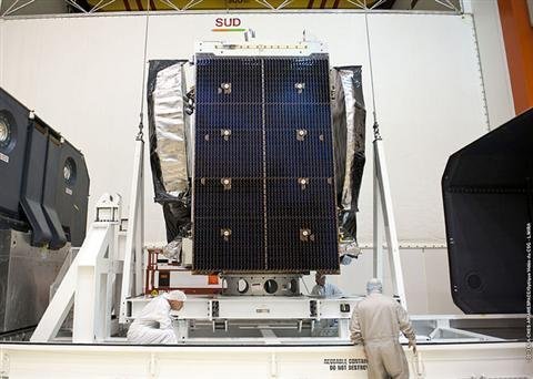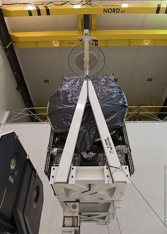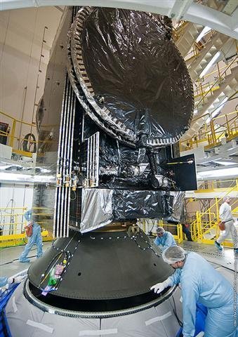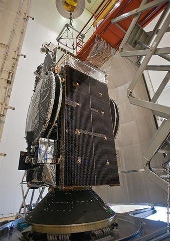 | Sau đó, vệ tinh được đưa vào khoang chuyên chở (fairing) của tên lửa Ariane 5. |