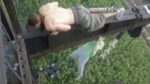 Tập thể dục ghê người ở trên nóc tòa tháp