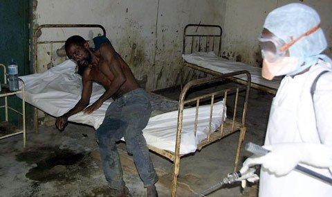 Nhân viên y tế đang xịt thuốc tẩy uế tại phòng bệnh nhân sốt xuất huyết Ebola ở Uganda. Ảnh: WordPress |