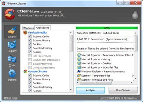 Để làm sạch những tập tin rác, hãy tải về và dùng thử CCleaner. CCleaner làm sạch các file rác từ nhiều chương trình của hãng thứ ba và cũng làm sạch nhưng file Windows và Disk Cleanup không xử lý.