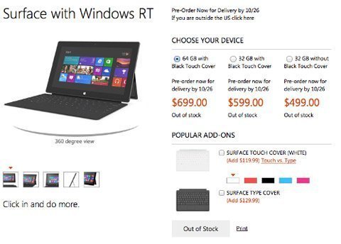 Sáng 16/10 (giờ Mỹ), Microsoft đã công bố giá bán máy tính bảng Surface trên trang chủ song lại gỡ bỏ thông tin này.