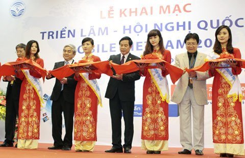 | Bộ trưởng Nguyễn Bắc Son cắt băng khai mạc Triển lãm - Hội nghị Mobile Vietnam 2012. |