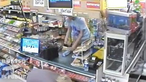 Tên cướp bị cô gái tống cổ khỏi cửa hàng