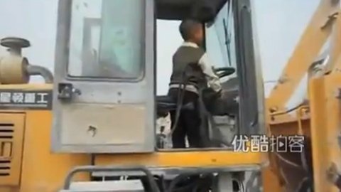 Bé 5 tuổi lái máy xúc