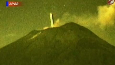 UFO hình trụ lao xuống miệng núi lửa