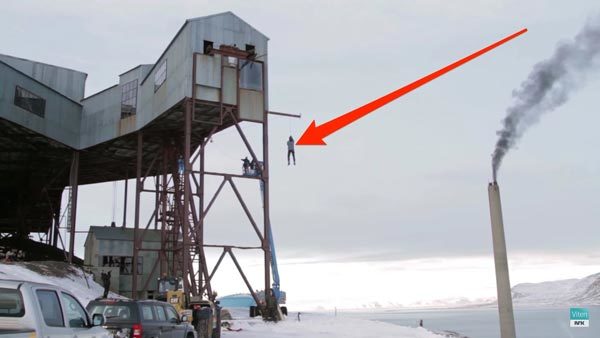 Để chứng minh một thuộc tính cơ bản của vật lý học, chuyên gia vật lý người Na Uy Andreas Wahl đã dũng cảm tự buộc mình vào một bên tòa nhà và lao xuống từ độ cao 14 mét.