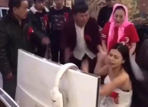 Sự cố bi hài xảy ra ở Trung Quốc. Đoạn video cho thấy chú rể cùng gia đình không ngừng quát mắng cô dâu trẻ trong bộ váy cưới trắng tinh, đang mải mê với game trực tuyến yêu thích.