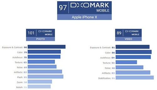 DXOMark đã dành số điểm 101 cho phiên bản kỷ niệm 10 năm iPhone X, đây là số điểm cao nhất dành cho smartphone.