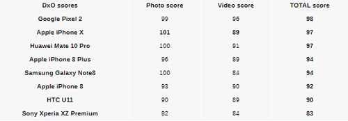 Với số điểm này, iPhone X xếp trên cả mô hình Samsung Galaxy Note 8 và Huawei Mate 10 Pro với số điểm 100.