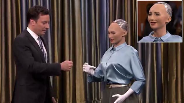 Sophia đã có mặt trên sân khấu chương trình "The Tonight Show" phát đêm 26/4 để trò chuyện cùng người dẫn chương trình kiêm diễn viên hài Jimmy Fallon. Robot sở hữu dáng vẻ của một phụ nữ này khiến khán giả xem chương trình có những cảm xúc lẫn lộn, vừa kinh ngạc, thích thú với khả năng đối đáp linh hoạt, vừa e sợ, khó chịu trước các tuyên bố "động trời" của nó.