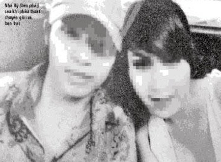 | Nhã Kỳ (bên phải) sau khi phẫu thuật chuyển giới và bạn trai. |
