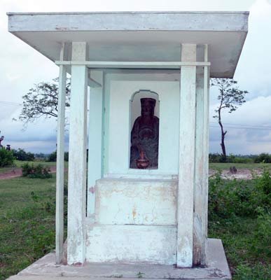 | Sợ bị mất cắp, bà con dân làng xây nhà che kín hết 3 hướng để bảo vệ pho tượng quý. |