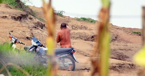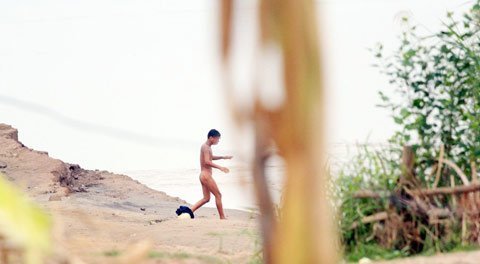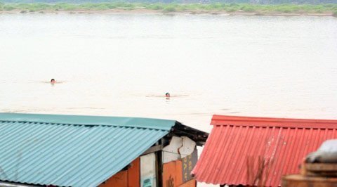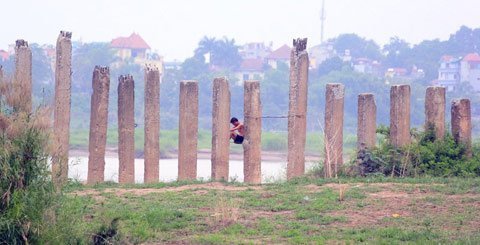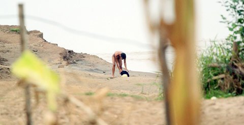 | Một góc bãi "tắm tiên" của các "siêu nhân" ở bãi giữa sông Hồng, nơi lạnh nhất Hà Thành. |