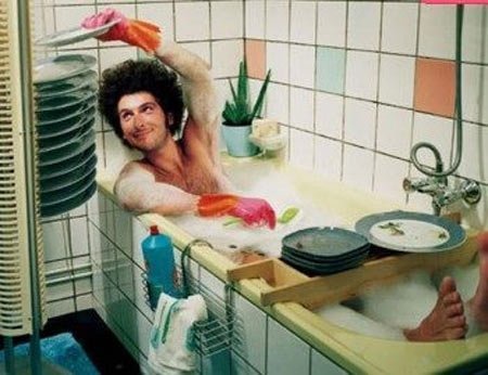Phụ nữ thật tinh khôn. Chả những lấy đi của đàn ông phần lau dọn, họ còn tước đi niềm yêu thích chúng. Họ tung ra đủ các luận điệu, tuyên truyền, nói rằng việc nhà là việc vụn vặt, tủn mủn, không xứng đáng với sức khỏe, kiến thức, cũng như phẩm giá cao quý của mọi ông chồng. Hậu quả là bao nhiêu thế kỷ qua, đàn ông bị dằn vặt như Hamlet: "Rửa bát hay không rửa bát". Rửa thì bị nghĩ là tầm thường, không làm được việc lớn. Không rửa thì tiếc nuối vì đó thực ra vẫn còn dễ chịu hơn ngàn lần những việc mình sẽ phải gặp ở công ty (thời Hamlet chưa có công ty, nhưng đã có triều đình!).