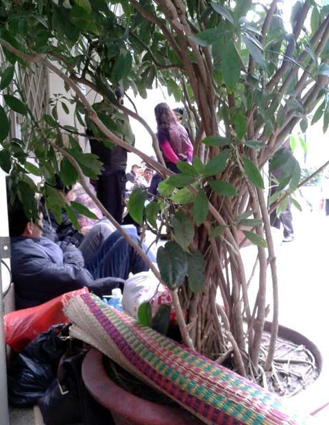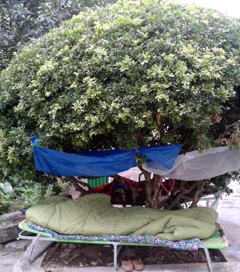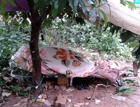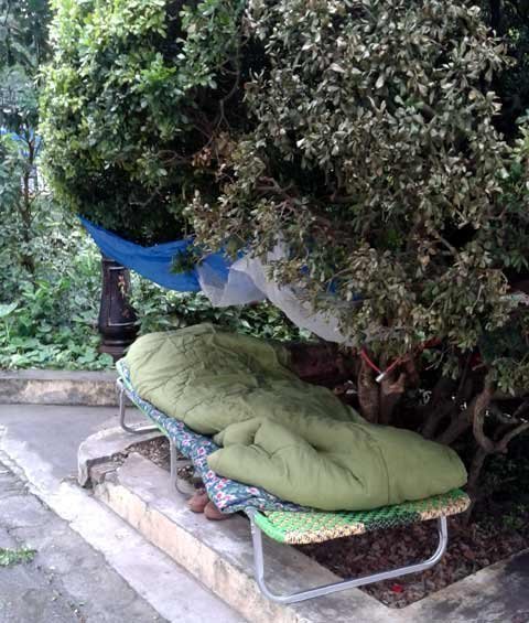 …dưới gốc cây, giữa khuôn viên bệnh viện