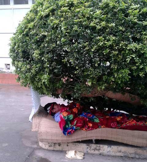 Không đủ chỗ trên hành lang bệnh viện, một số người nhà bệnh nhân lại tìm được một chỗ ngủ đặc biệt …